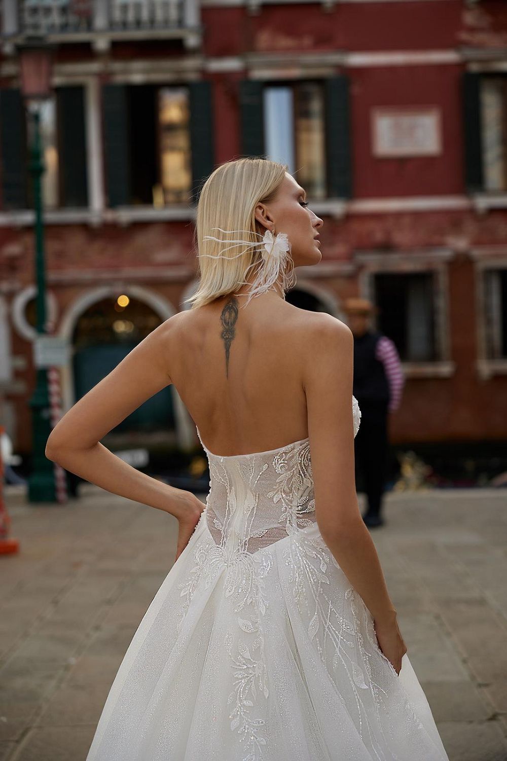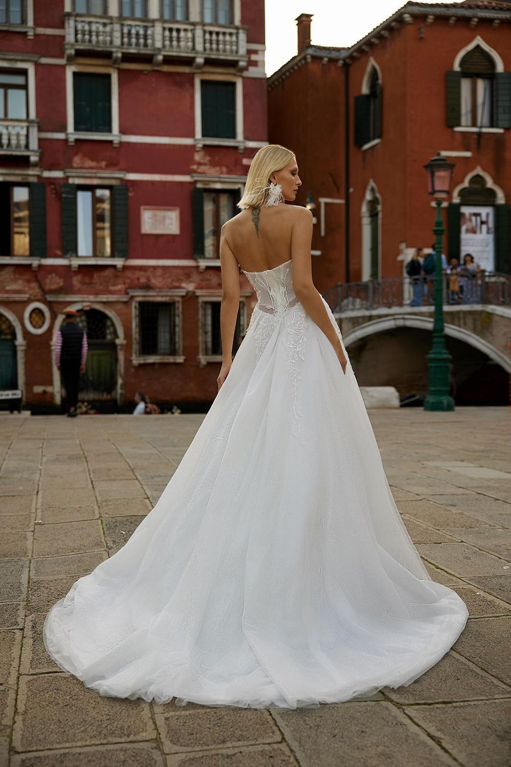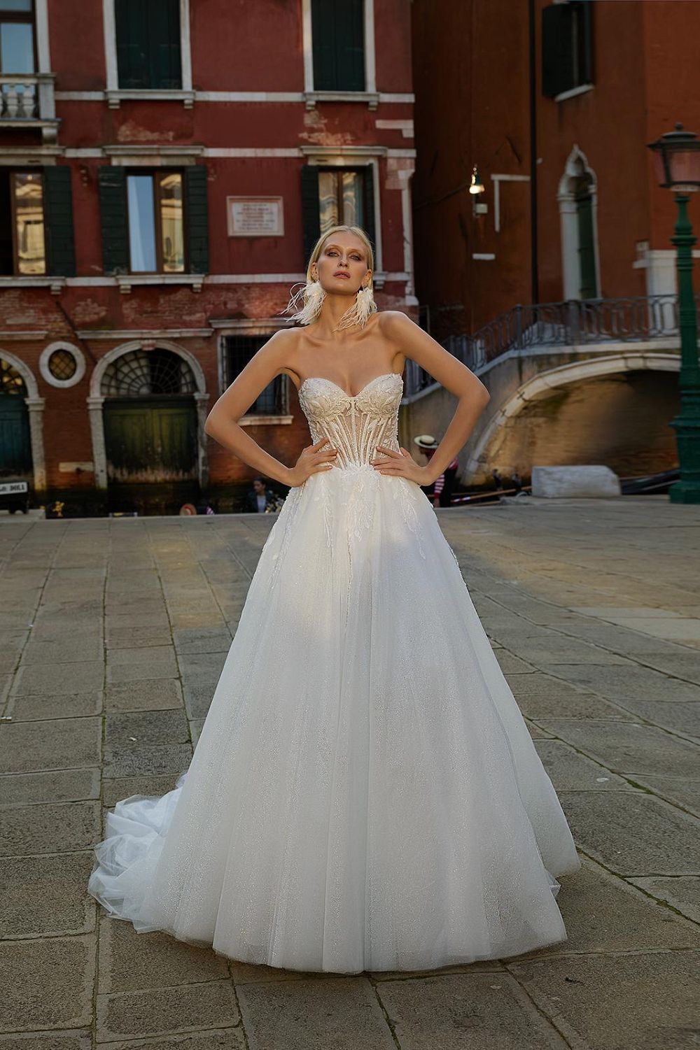 πολυ εντυπωσιακο νυφικο λαμπερο με κεντημενο κορσε καρδια στραπλες και φουστα πλουσια ολο γκλιτερ και δαντελα απλικε